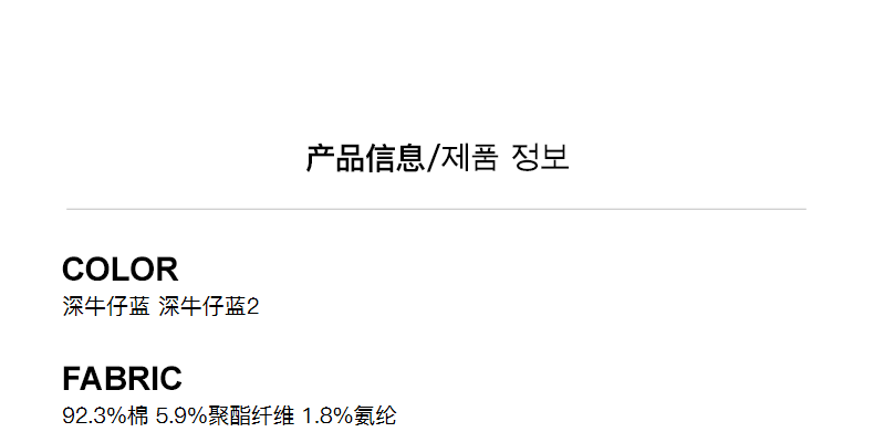 | Material composition | Cotton 92.3% polyester fiber 5.9% polyurethane elastic fiber (spandex) 1.8% |