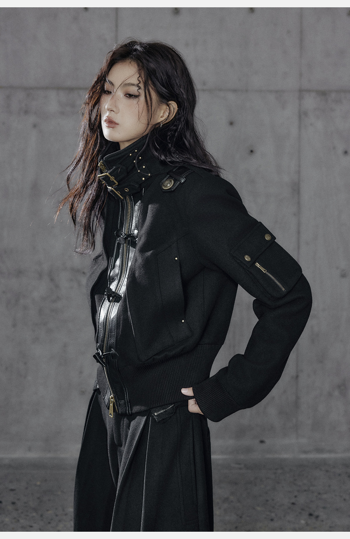 A black jacket built around restraint and detail.